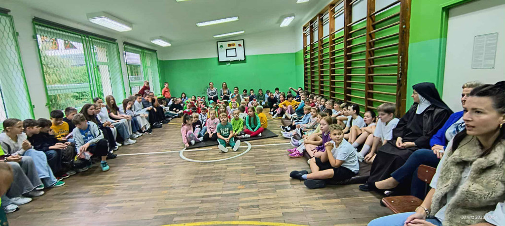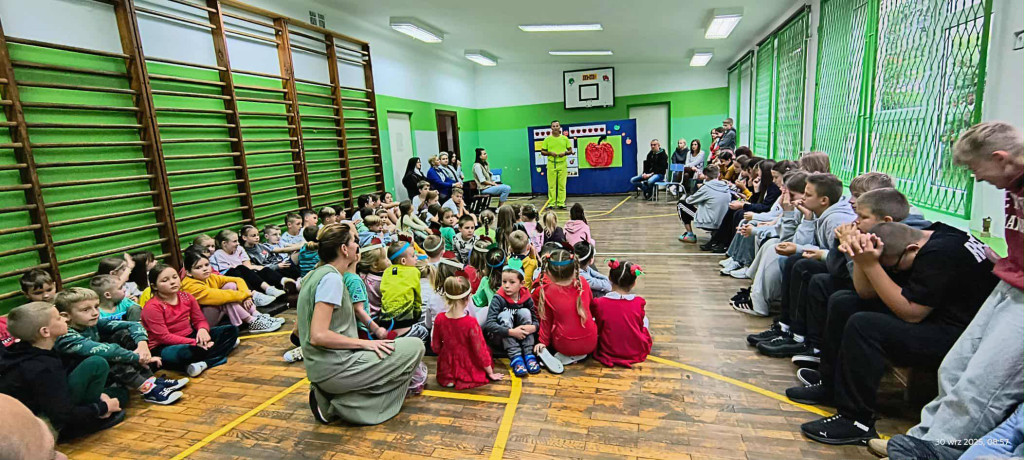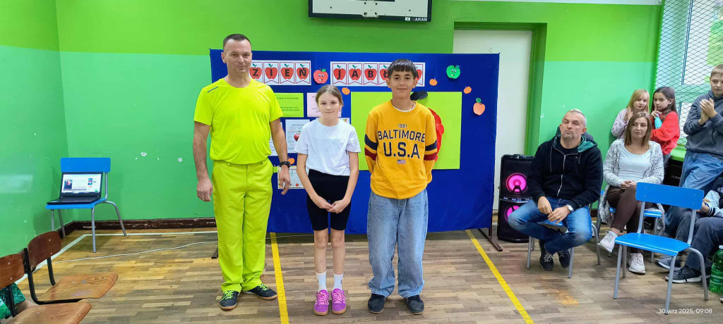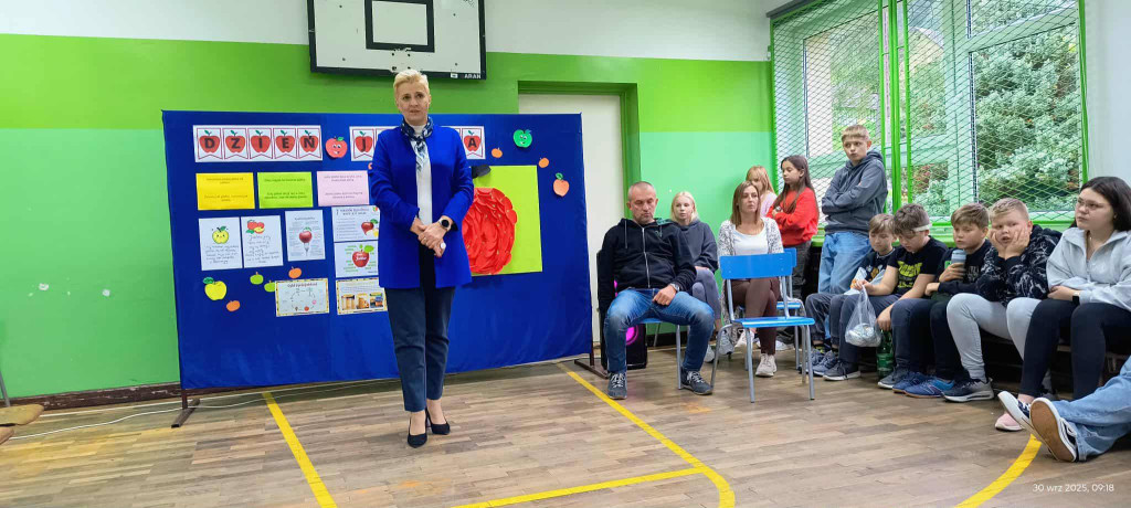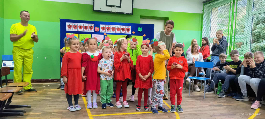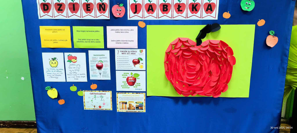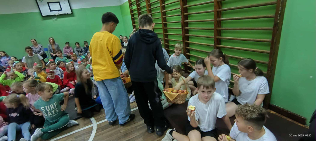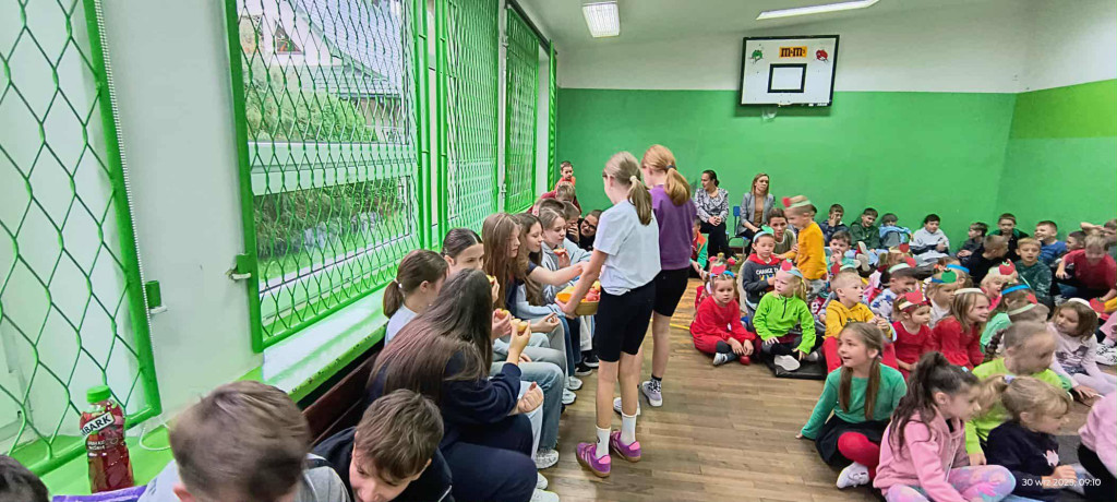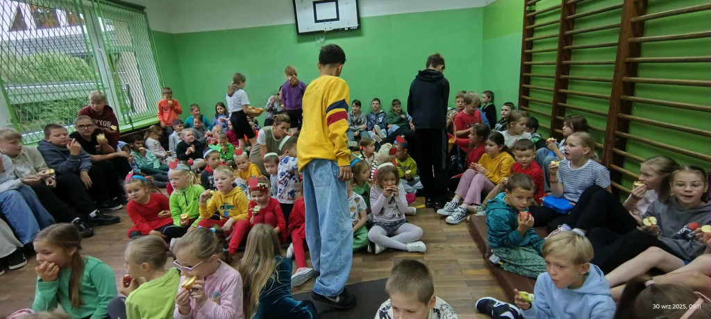 30 września Samorząd Uczniowski zorganizował apel z okazji Światowego Dnia Jabłka. Wszystkie dzieci, uczniowie i pracownicy szkoły zebrali się na sali gimnastycznej, żeby skosztować te smaczne owoce. W tym dniu obowiązywał strój w kolorze jabłek. Pan Piotr Gał, który przebrał się za zielone jabłuszko, przedstawił zebranym najciekawsze fakty o tych niezwykłych owocach. Dzieci z oddziału przedszkolnego w debiutanckim wystąpieniu zaprezentowały piosenkę o jabłku. Wiele emocji wzbudziło poznanie przysłów o jabłku i próba ich wyjaśnienia. Gazetkę przygotował Piotr Gał. Samorząd Uczniowski serdecznie dziękuje wszystkim darczyńcom, którzy przekazali skrzynki jabłek: Pani Alicji Lach F.H.U. ALICJA (Tęgoborze), Panu Mariuszowi Gądkowi z firmy FRODO (Nowy Sącz).