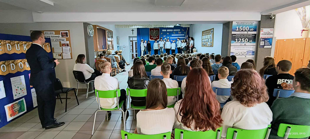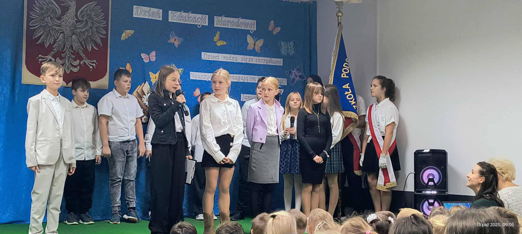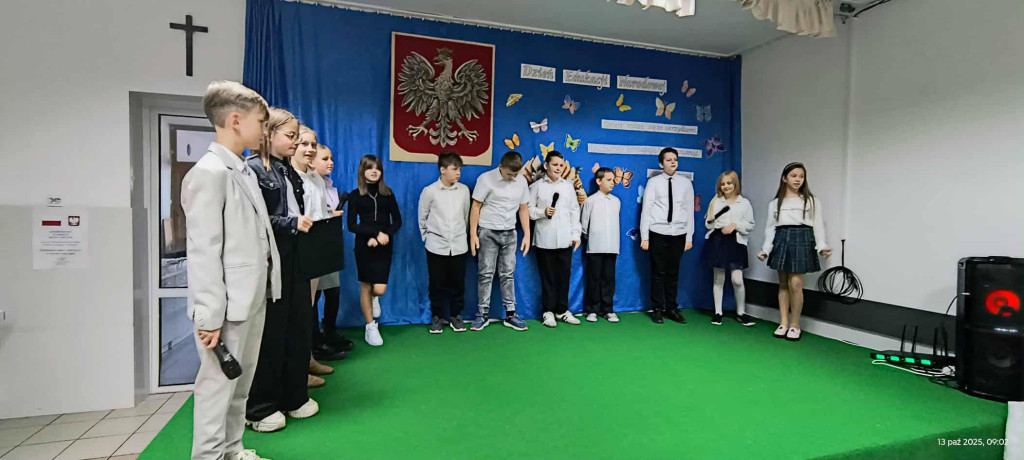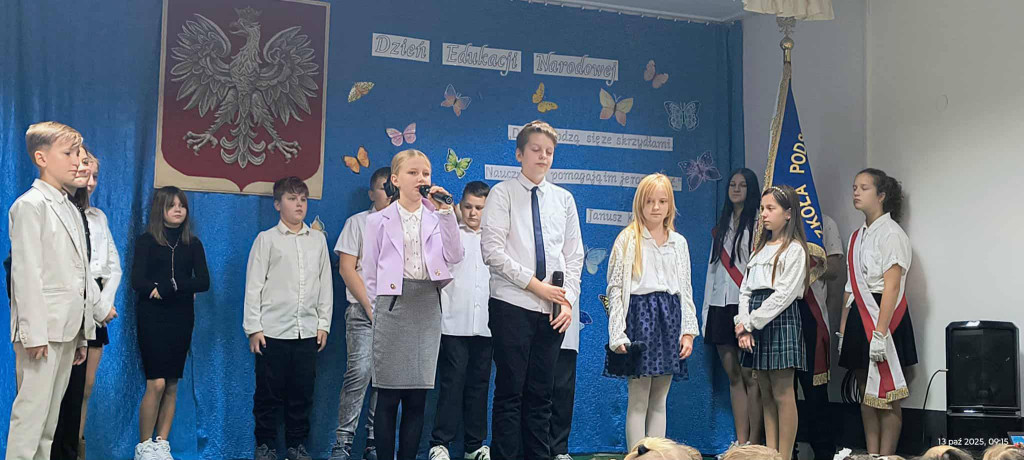 W poniedziałek,13 października, w naszej szkole odbyła się uroczysta akademia z okazji Dnia Edukacji Narodowej. Był to wyjątkowy moment, aby podziękować naszym nauczycielom i pracownikom szkoły za ich trud, cierpliwość oraz codzienne zaangażowanie w wychowanie i edukację młodych pokoleń.
