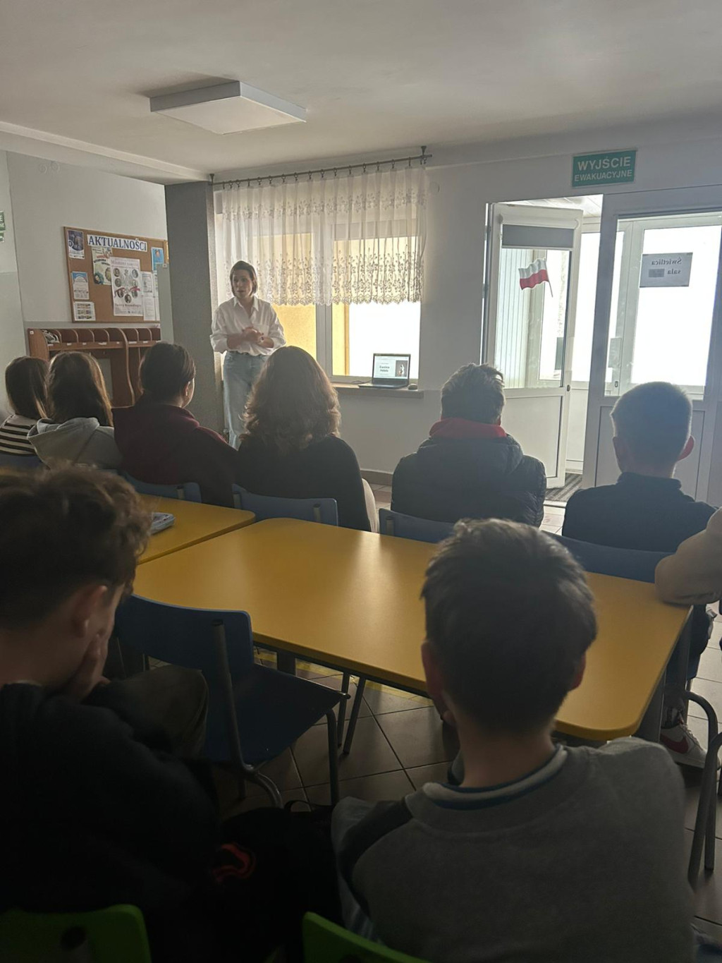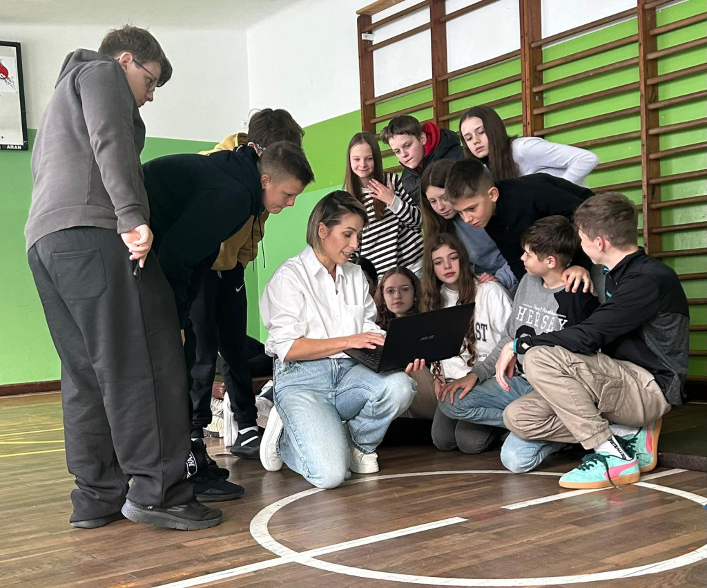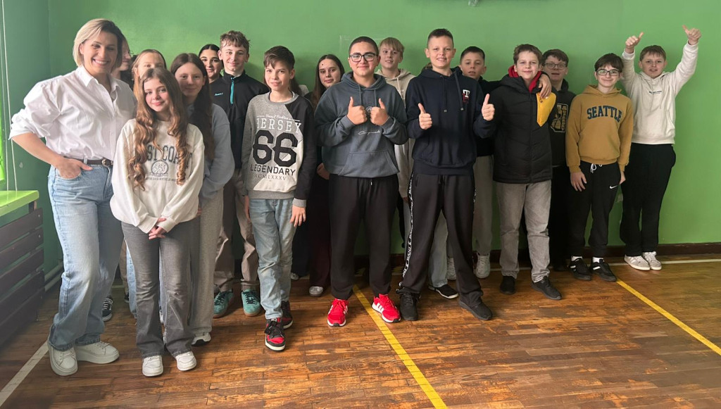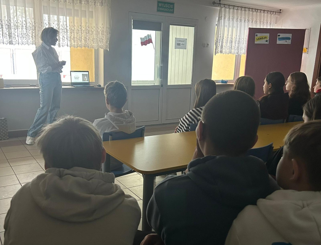 Dnia 24 listopada 2025r pomimo utrudnień związanych z brakiem prądu przez cały dzień, udało nam się zorganizować wyjątkowe spotkanie w ramach Doradztwa zawodowego. Klasy VII i VIII uczestniczyły w rozmowie z panią Eweliną Hebdą, właścicielką siłowni Fit&Joy w Podegrodziu.