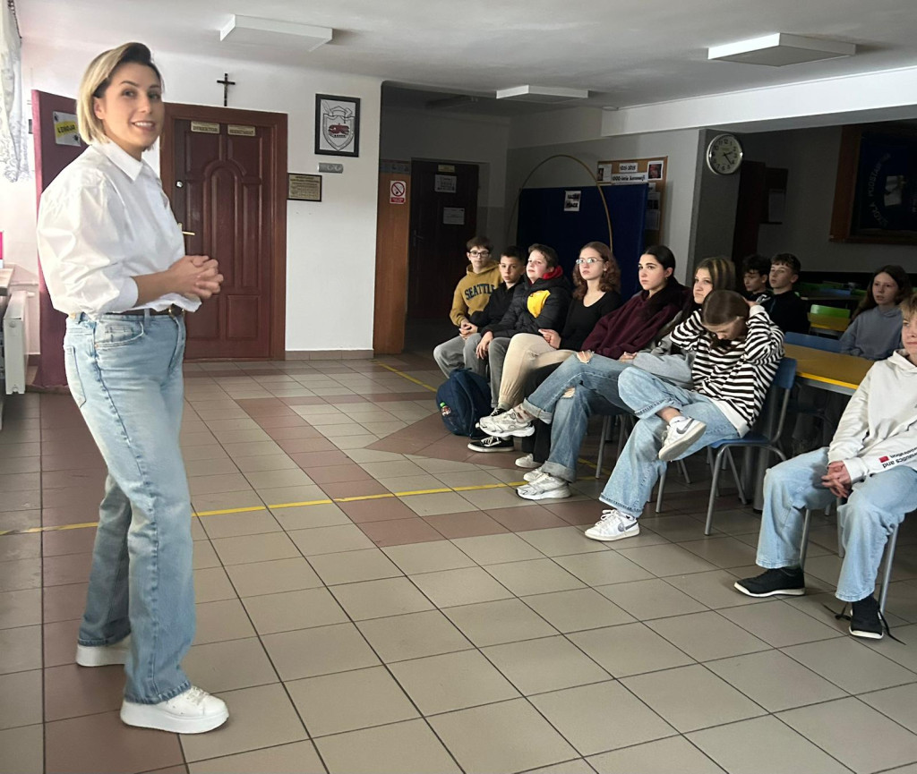 Pani Ewelina podzieliła się swoją historią – opowiedziała, jak dzięki pasji, wytrwałości i ciężkiej pracy doszła do miejsca, w którym jest dzisiaj. Jej opowieść była dla uczniów cenną lekcją pokazującą, że warto wierzyć w siebie i odważnie spełniać marzenia.