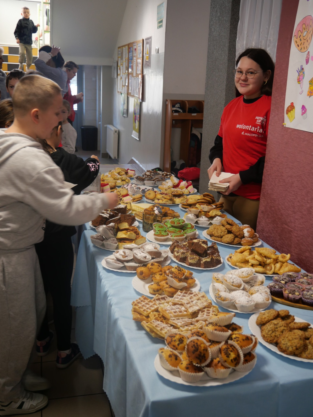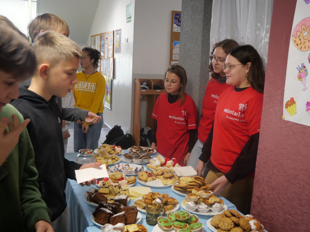 Nasi wolontariusze spisali się na medal: kroili ciasta, ogarniali stoisko, pilnowali „magicznego słoika”… ale cała słodka magia zaczęła się wczoraj w kuchniach, gdzie powstawały te wszystkie pyszności – ciasta, ciasteczka i inne cuda, które zamieniły się dziś w realne dobro.