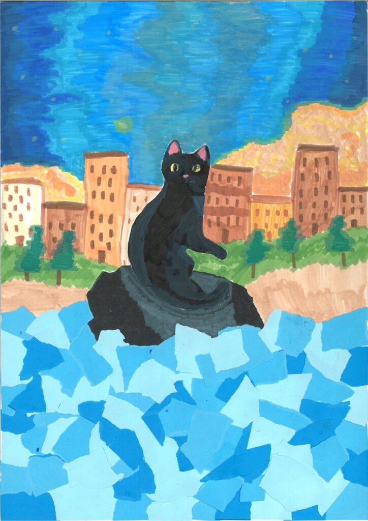Anna Jurek z kl. VI ze Szkoły Podstawowej im. Jana Brzechwy w Skrudzinie – za pracę „Kot, który nie bał się wody. Z filmu FLOW”