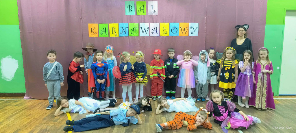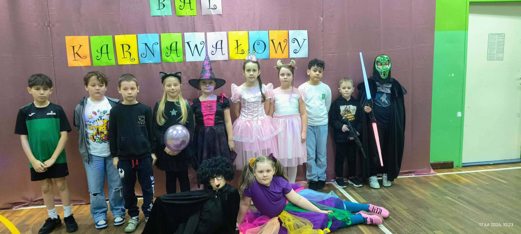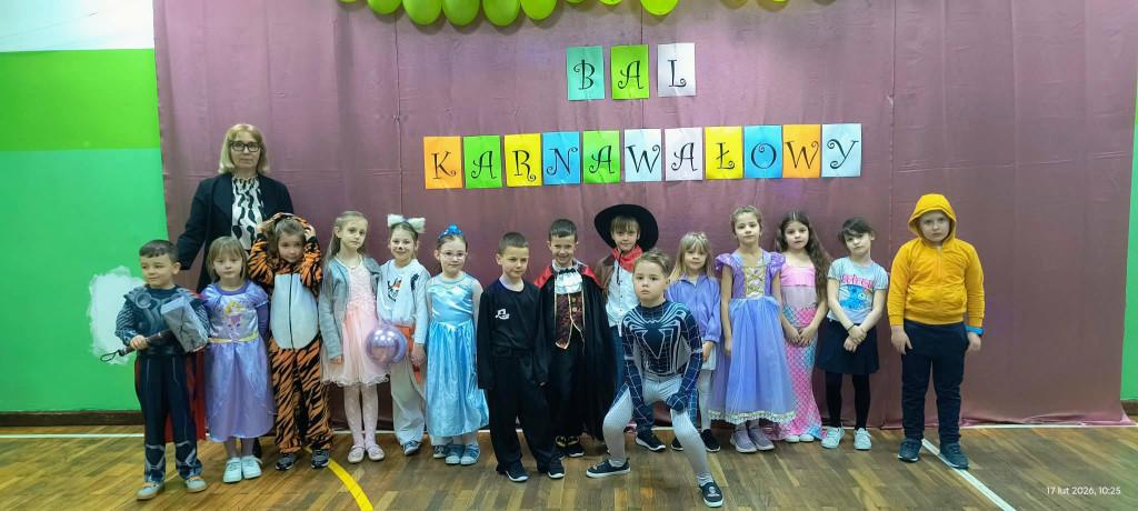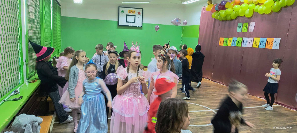 17.02.2026r. odbyła się w naszej szkole zabawa karnawałowa. W tym dniu uczniowie zamienili się w barwne postacie superbohaterów, wróżek i zwierząt. Kolorowe dekoracje, balkonowe girlandy oraz muzyka stworzyły atmosferę radości. Wodzirej - p.Maria Kałuzińska dbała o odpowiedni dobór muzyki, a p. Renata Zagórowska zapewniła liczne zabawy taneczne, ruchowe i konkursy, które integrowały społeczność uczniowską. Pyszny poczęstunek przygotowali nasi kochani rodzice - dziękujemy